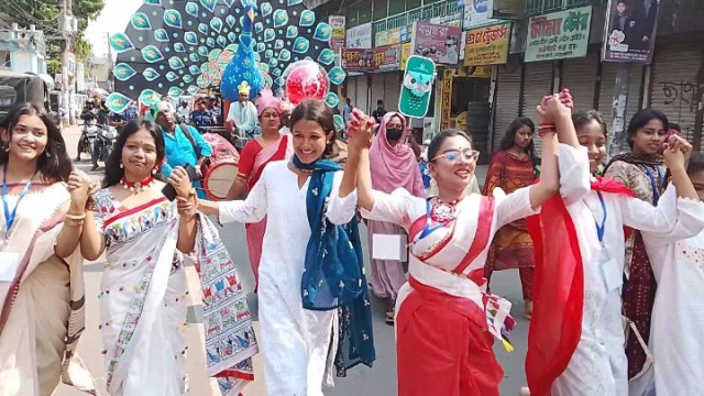 "The New Year celebrations began in the morning at the old Collectorate grounds in Moktarpara. The day's program began with the rendition of the national anthem and the song 'Eso He Baishakh'. Later, a colorful Baisakhi procession circled the main roads of the city," the report detailed.