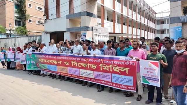 Rajshahi, Oct 19 (V7N) – The Bangladesh Road and Highway Workers’ Union organized a human chain in Lakshipur, Rajshahi, on Sunday at 11:30 a.m., demanding resolution of salary issues for master roll employees, implementation of 27 pending court cases, and enforcement of verdicts in seven subsequent cases.