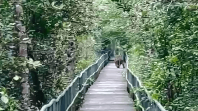 Sundarbans, Oct 11 (V7N) – A tiger was observed roaming on the wooden foot trail at the Harbariya Tourist Center in the Sundarbans on Saturday morning, according to forest officials. Forest guards on regular patrol first spotted the tiger and raised alarms, prompting the animal to retreat into the deeper forest.