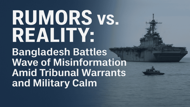 Dhaka, Oct 16 (V7N) — As Bangladesh wakes up to a new day, it does so under a haze of swirling rumors—claims of a U.S. warship stationed near Kutubdia, reports of three ports allegedly handed over to foreign control, and speculation that Chief Adviser Dr. Muhammad Yunus will not return to the country. A closer examination by official and military sources reveals that most of these sensational narratives are baseless or exaggerated. However, genuine developments—such as arrest warrants issued by the International Crimes Tribunal and subsequent military cooperation in detaining the accused—have created a complex mix of verified facts, misinformation, and heightened political tension.