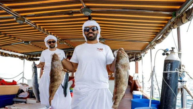 Aboard the boats, men in customary sea gear -- a white t-shirt and towel -- pay tribute to the age-old tradition of line-fishing in the energy-rich Gulf emirate for the 11th edition of the Senyar festival.