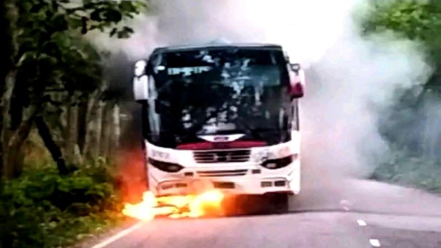 The impact of the crash caused both the bus and the motorcycle to burst into flames. On receiving information, a team from Nalchity Police Station and the Jhalokathi Fire Service rushed to the scene and brought the fire under control after an effort lasting several minutes.