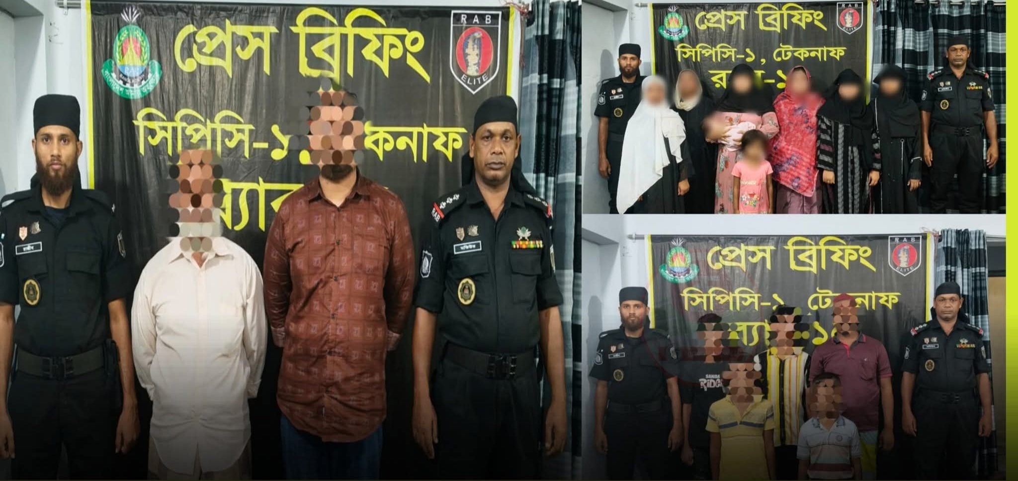 In a separate operation, the Rapid Action Battalion (RAB-15) detained 13 Rohingyas and two Bangladeshi nationals from Teknaf Municipality’s KK Para area late Monday night. The Bangladeshis—identified as Abdullah (27), son of the late Omar Hamza, and Md Fayaz (65), son of the late Hasan Sharif—were accused of sheltering Rohingyas illegally. The detainees were handed over to Teknaf Model Police Station for further legal action.