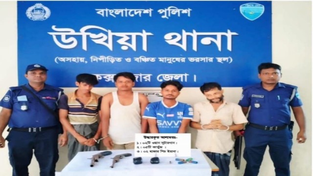 Cox’s Bazar, Oct 5 (V7N) — In a special pre-dawn operation, Ukhiya police in Cox’s Bazar arrested four suspects and recovered a cache of locally made firearms, ammunition, and 2,000 Yaba pills from a house in Palongkhali Union’s Moragachtala area.