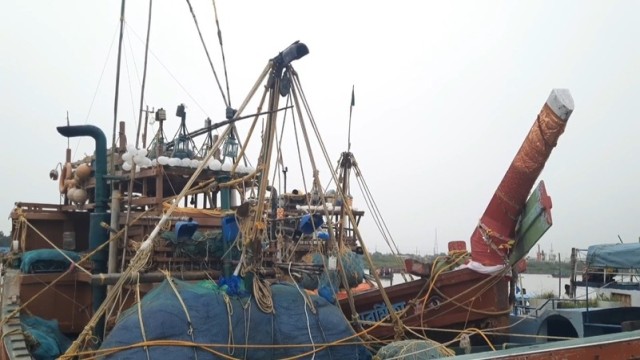 Mongla, Oct 18 (V7N) – The Bangladesh Navy has detained 14 Indian fishermen along with their fishing trawler for illegally entering Bangladesh’s territorial waters in the Bay of Bengal and fishing without authorization. The captured vessel was brought to the Digraj Naval Base in Mongla at around 5:30 p.m. on Saturday. The process of handing the detainees and their trawler over to the local police was underway later that night.